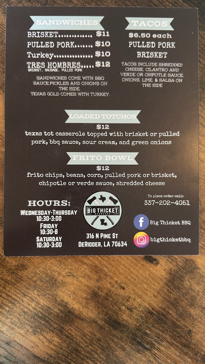 Welcome to Big Thicket BBQ, where BBQ dreams come true at 316 N Pine St, DeRidder, LA. This cozy establishment, housed in a charming transformed café, captivates visitors with its warm atmosphere and friendly staff. The menu features an array of mouthwatering options crafted with precision and passion.